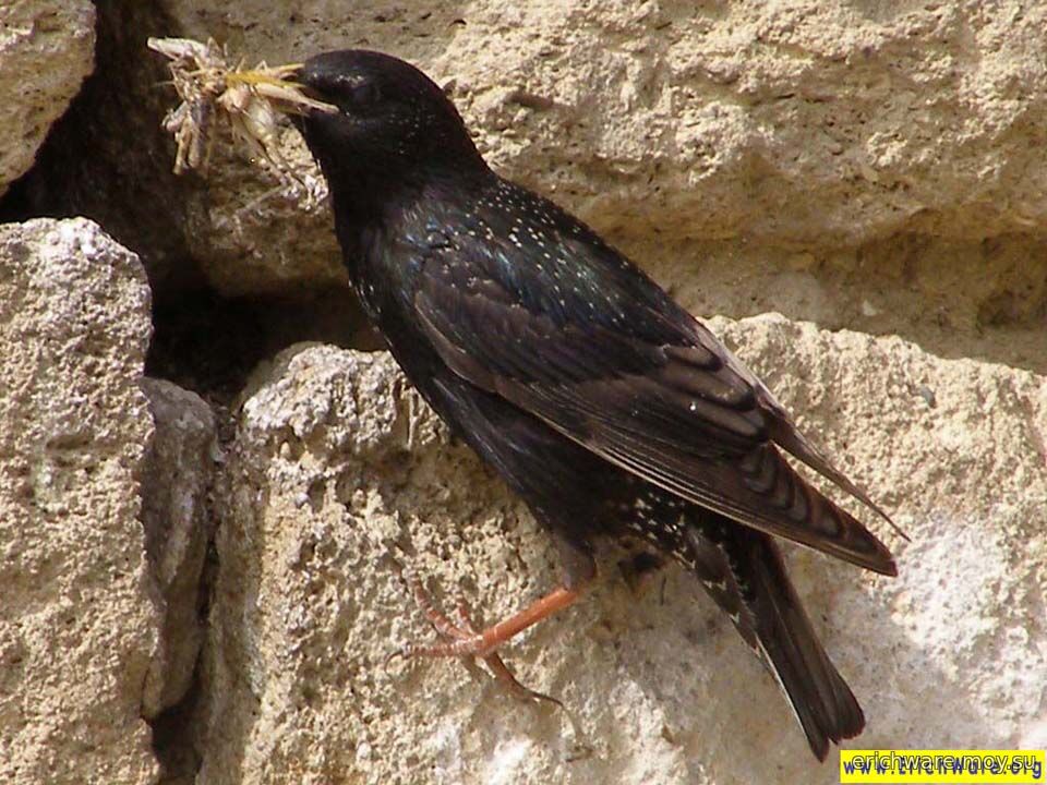 Скворец у гнезда